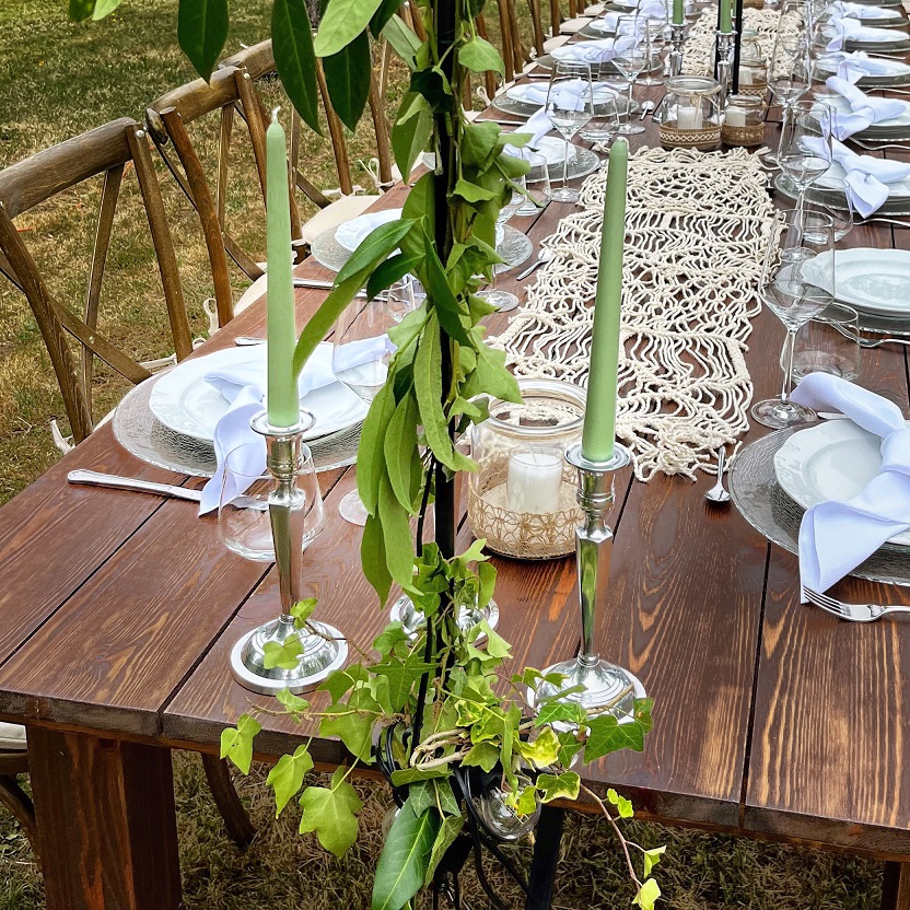 Bei der Tischdekoration sind unsere silbernen Kerzenständer aus Metall ein echter Hingucker. Sie sind perfekt geeignet um einen romantischen Vintage- & Boho-Stil zu schaffen, passen aber auch zur Dekoration aus der klassischen Epoche. Bitte beachte, dass keine Kerzen im Lieferumfang enthalten sind. Die Rückgabe der Kerzenständer erfolgt bitte im gereinigten Zustand, ohne Wachsrückstände.